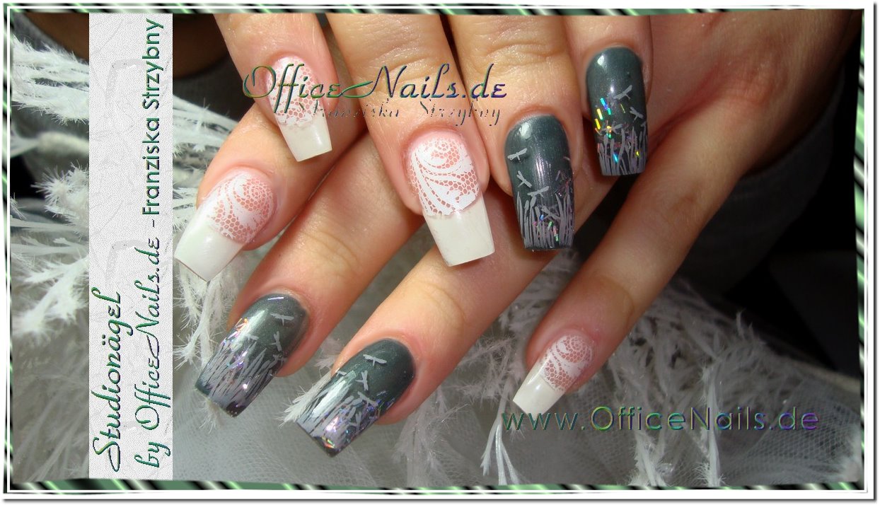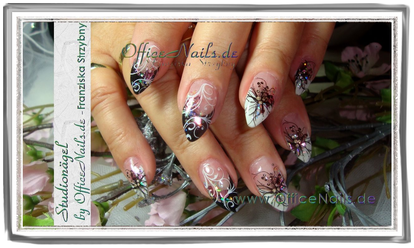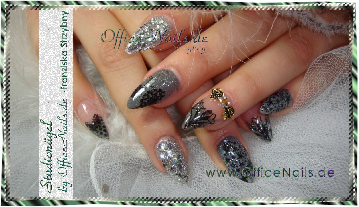 hier schwarzes French verlaufend zu silbernen Spitzen mit allerlei